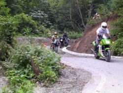 今回初参加のツッチー君はHONDAのレプリカマシンVFR400Rを操ります。果たしてその実力は? もう一人の初参加者ハタボーさんはT.Kさんの職場の同僚との事、愛車はkawasakiゼファー750です。長岡在住なので今回は途中で合流です。R8曾地峠より柏崎を避ける例のルートで柿崎町へGO!前回このルートの面白さを知ったアップリカが途中でスパート、あれ?いつもより加速が良くない?何で?燃調が上手くいったのかな?よーく見たらエアークリーナーが元に戻っているではないか、やっぱり純正が一番とゆう事ですかね!