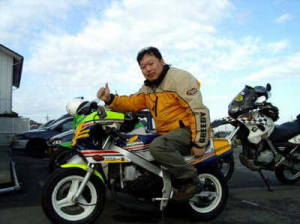 | AM8:00 ツーリングシーズンも残すところ後僅かとなった10月のツーリング。今回の目的地は福島県二本松市の東北サファリパークです。前日に雨が降り心配していた天気も朝から快晴となりました。しかーし、集合場所に集まってくれたのは忍者使い、アーパース、みんみん、Y/Iの4名だけでした。しかもみんみんさんとY/Iさんはお見送りです。と、いう事は?そうなんです。参加者は忍者使いとアーパースの2人だけで〜す(T_T)。 こんなにいい天気なのにみんなは何やってるの?さぞかし悔しい思いをしている事でしょうね、あれ?ところでみんみんさんの足はどうしたんでしょうか・・・刀もXRも見当たらないですね〜おや?あの源チヤは何だ?それはロスマンズカラーのレプリカマシン・・・えっこれってみんみんさんのバイクなんですか?なりは小さくても立派なNSRです。立派なチャンバーも着いてます。 アーパースが跨って見ましたが、どうみてもポケバイに見えてしまうのは私だけ?・・・(^^ゞ) |