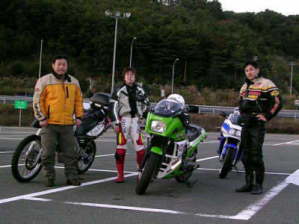 〜PM8:00 日本の伝統文化を堪能したところでT.Kさんとの待ち合わせ場所の磐越道『五百川PA』へ向かいます。二本松ICより東北自動車道に乗り、郡山JCより磐越道へ、PM4:00予定通り五百川PAに到着。ところが待てども待てどもT.Kさんは現れません、これまでお互いに何度か携帯に掛けてはいたのですが、いつもどちらかがバイク運転中だったのか一度も連絡が取れていませんでした。15分ほど待った頃でしょうか、ようやくT.Kさんから着信が、聞けばあちらの女性メンバーが一人遅れている為に後30〜40分くらい掛かりそうとの事、そろそろ日が暮れ始めて冷え込みも強くなってきましたがせっかくなので待つ事にしました。そして40分後ようやくT.Kさんが到着しかし・・・あれ?誰?バイクが違うよ・・・なんとT.Kさん愛車を乗り換えたとの事です。ビックリ!その後は3人で津川までノンストップ、忍者使い常連の『次男坊亭』さんで晩飯を食べ、三条到着はPM8:00くらいでした。帰りは寒かったですが、楽しい一日でした。本日参加出来なかった皆さんこんなにいい天気はもう無いかもね!残念でした。(^^ゞ |
