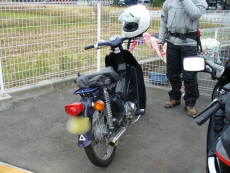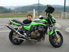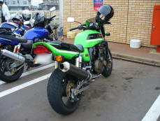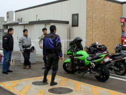 集合場所に集まったのは忍者使い以下、オルカ、アーパース、まえすとろ、ハッチャン、乾巧茶親分、ブエラー、ピロユキの8人でした。忍者使いのえこひいき(Kawaski乗りには特別)で、すでにメンバー登録済みのピロユキ君は今日が初参加です。なかなか愛敬のあるスタイルで、キャラのかぶるアーパースさんは早くもライバル視か?(爆) 愛車はZRX1200R(ライム)05モデルの新車です。 あれ?このカブは?・・・なんとブエラーさん11/3の撮影会の後腰痛が悪化したそうです。可哀想!(^_^;) それにしても親分の格好は何?それでR1000乗って来たの?見送り?えっ走るの?とりあえず9時までには帰るけど途中までは走るとの事です。(^_^;)